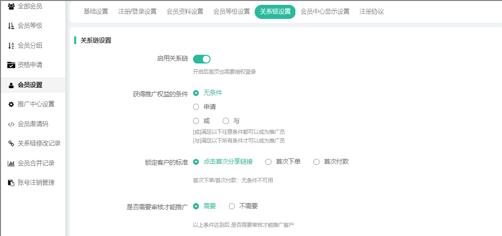 五、会员关系链设置