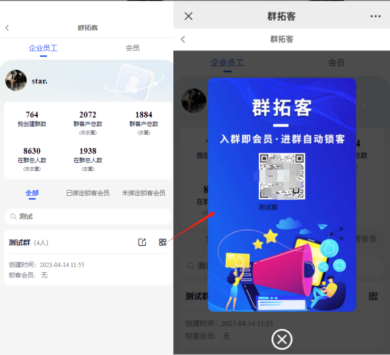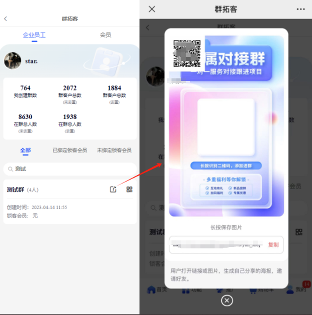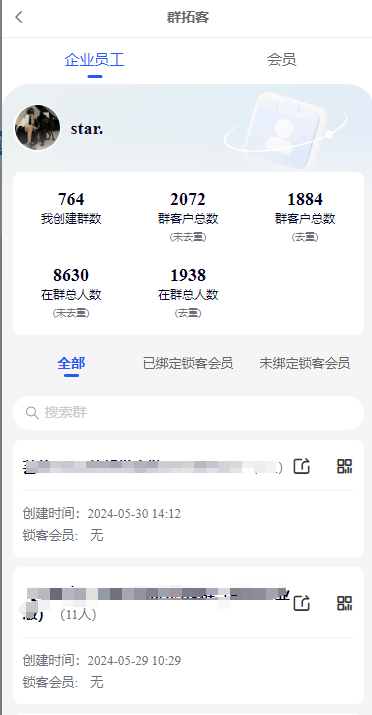 1、会员中心—群拓客—企业员工